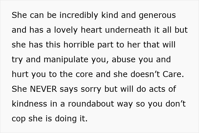She admitted to walking on eggshells around her and avoiding confrontation to save herself from any emotional exhaustion.