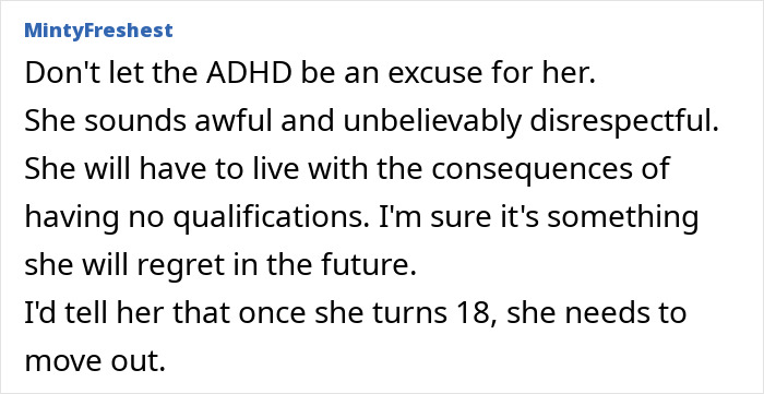 Netizens urged the OP not to let ADHD be an excuse for the daughters behavior.
